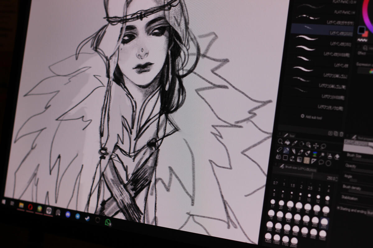 + The software I use are Easy Paint Tool SAI 2 for initial sketches, Clip Studio Paint for elaborate works, and Procreate on a 12.9 inch 5th generation iPad Pro.